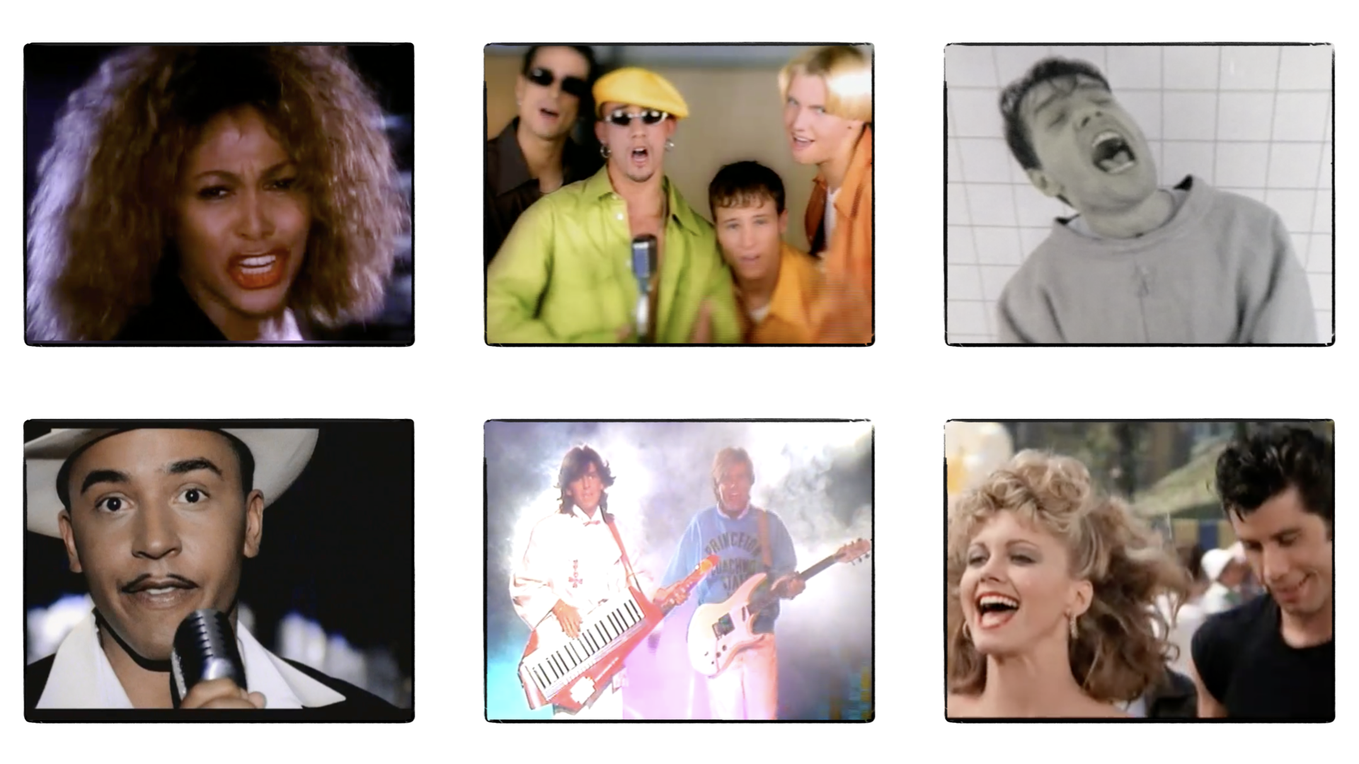 In den gesangsfreien Zeiten gibt es die besten Musikvideos und Hits der letzten 40 Jahre.
